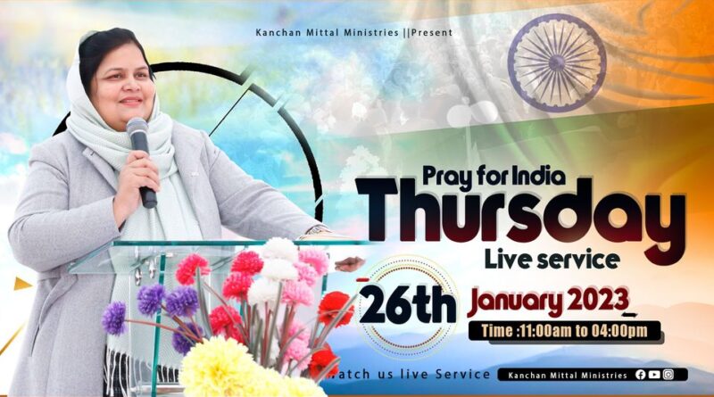 Kanchan Mittal Ministries welcome you in the Pray for India Thursday Live Service being held in Changera Church on the glorious day 26th January 2023. Woman of God Pastor Kanchan Mittal and the Spiritual Family will be amidst the church to unfurl India’s flag and pray for the peace of nation.
